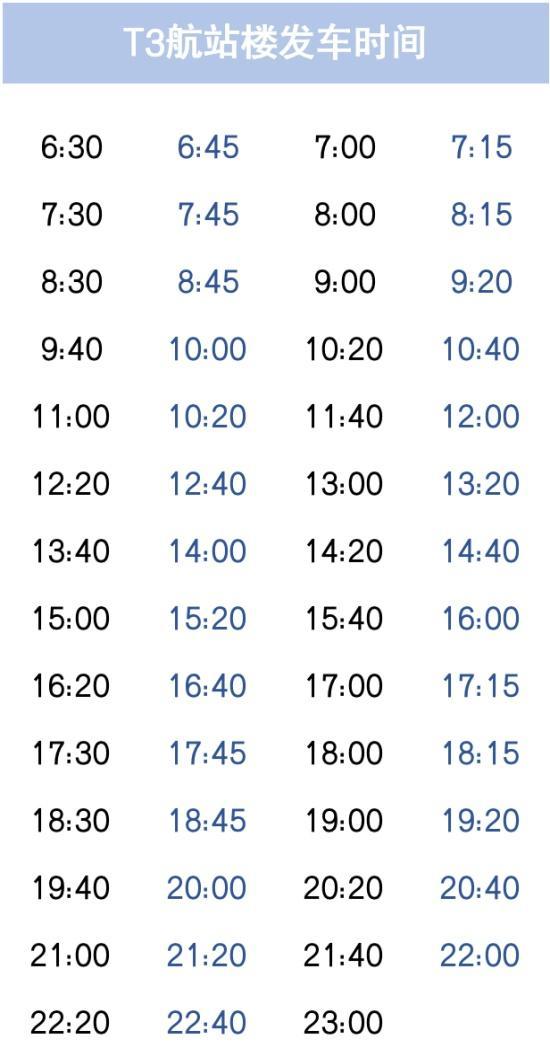 乘车点:T1出发层12号门、T2出发层42号门、T3出发层62号门