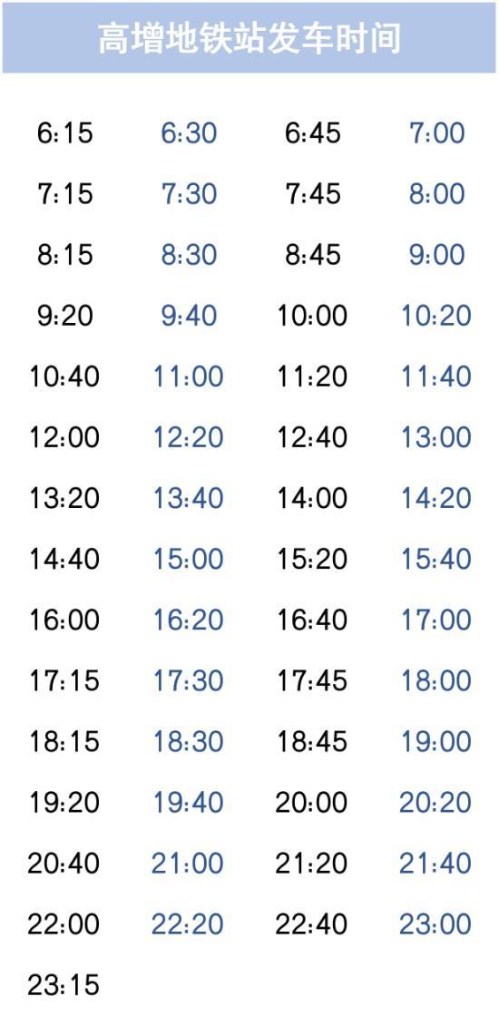 T3公交:衔接高增站,单程15分钟,15-20分钟/班。