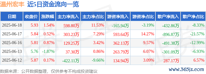 6月18日的资金流向数据方面,主力资金净流入598.8万元,占总成交额11.53%,游资资金净流出165.94万元,占总成交额3.19%,散户资金净流出432.86万元,占总成交额8.33%。